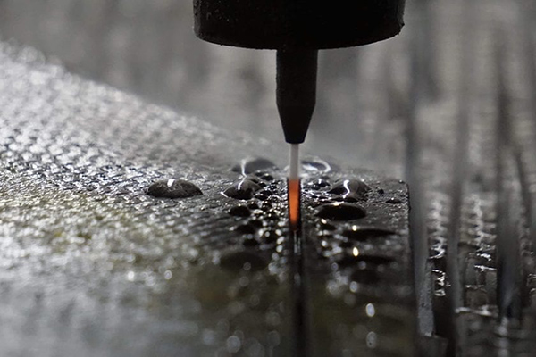 3、磨料水射流钻孔(AWJ):磨料水射流加工是目前热固性碳纤维制品切割的主流方式,将水射流轨迹设计成圆形,施加一定的水压,对热塑性碳纤维层压板进行钻孔处理,观测实际效果。