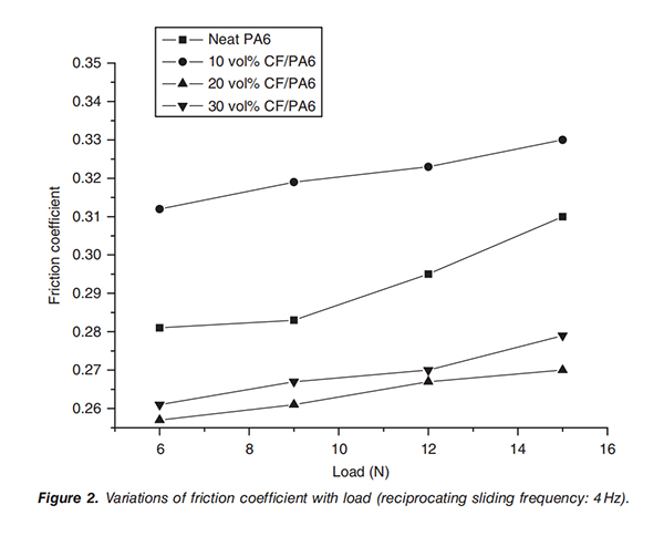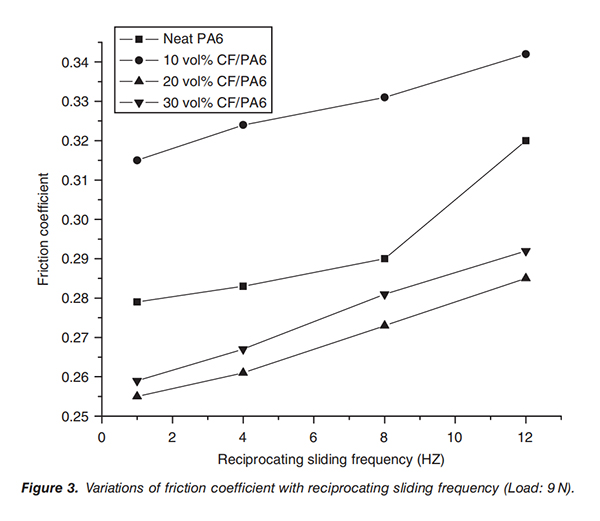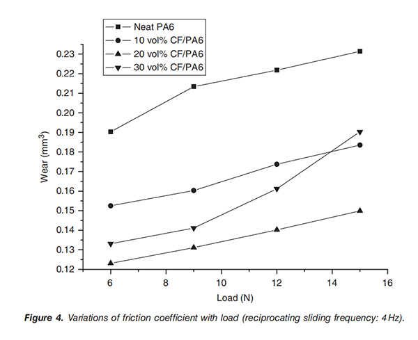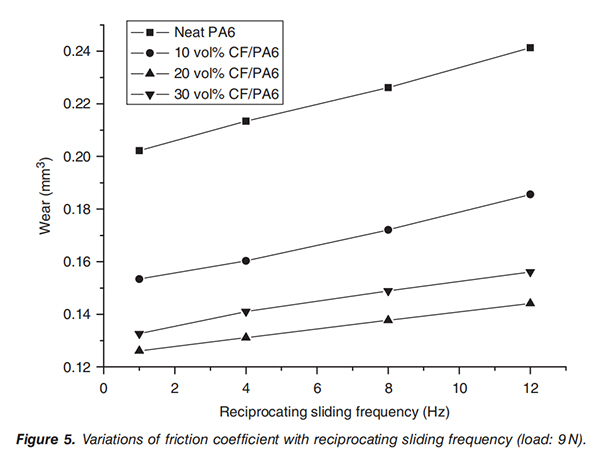 实测不同载荷力和滑动频率下CF/PA复合材料的耐磨效果