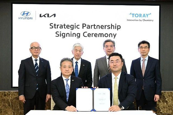 日本东丽公司董事长Akihiro Nikkaku和首席执行官Mitsuo Ohya,以及现代汽车首席执行官Chang Jae-hoon和起亚公司联合首席执行官Song Ho-sung一起出席了在现代汽车集团首尔总部举行的签字仪式。