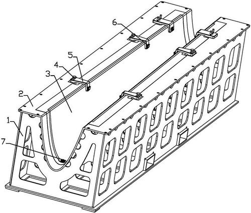 这些辅助的加强或加固件可与碳纤维复合材料模具实行共固化,形成一个整体模具结构,也可用胶接可机械连接方式与模具连接,两种连接方式可结合使用,视具体要求而定。